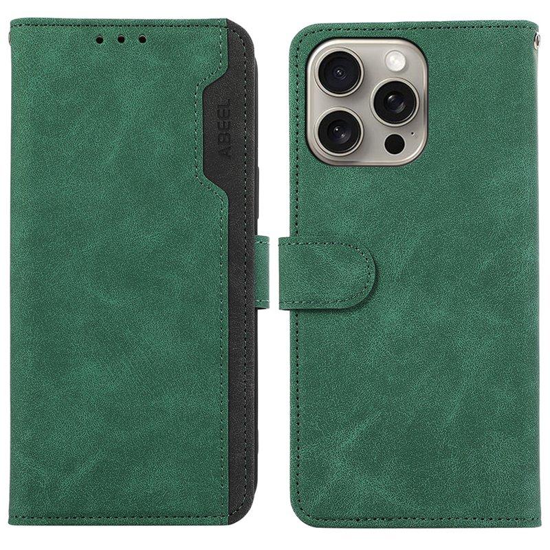 ABEEL iPhone 14 Pro Plånboksfodral Konstläder RFID-Skydd Flip Grön