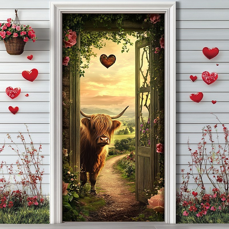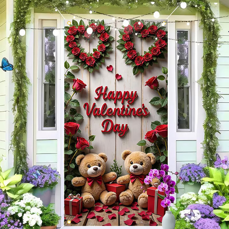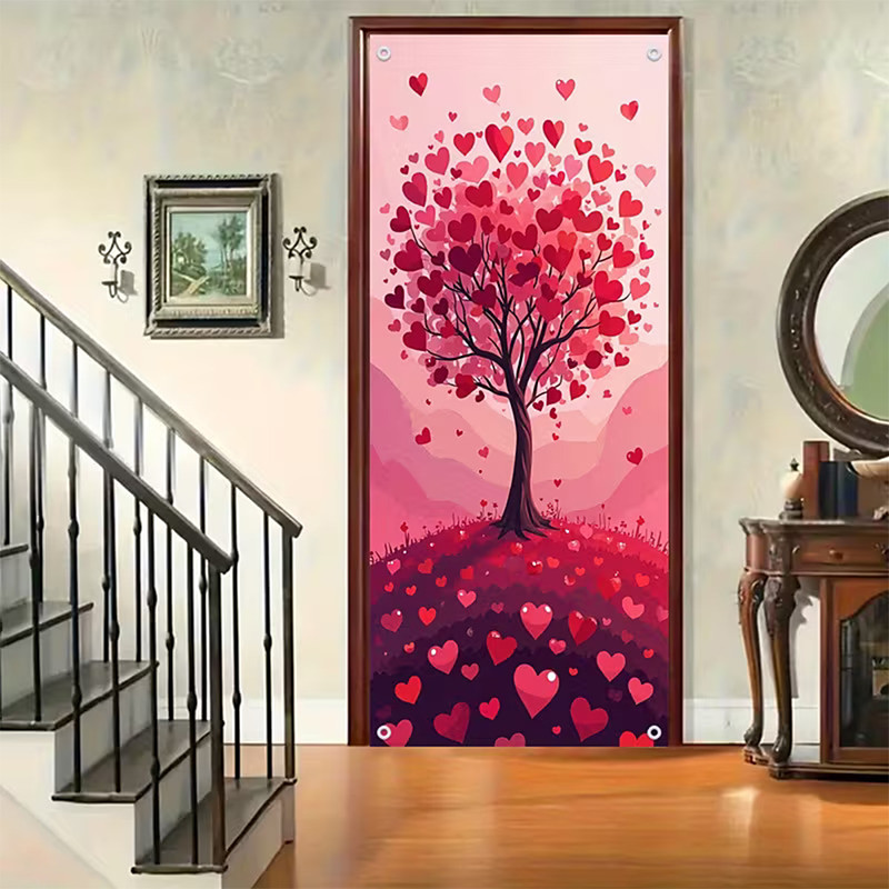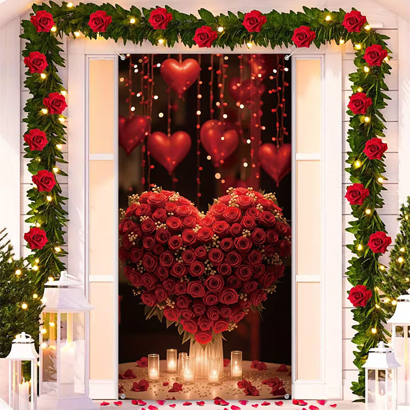 Valentine's Day Posters Door Cover Outdoor Banners Love Heart Cute Romantic Modern Party Dorm Shooting Backgrounds Front Door Marriage Proposal Decoration Home Decor
