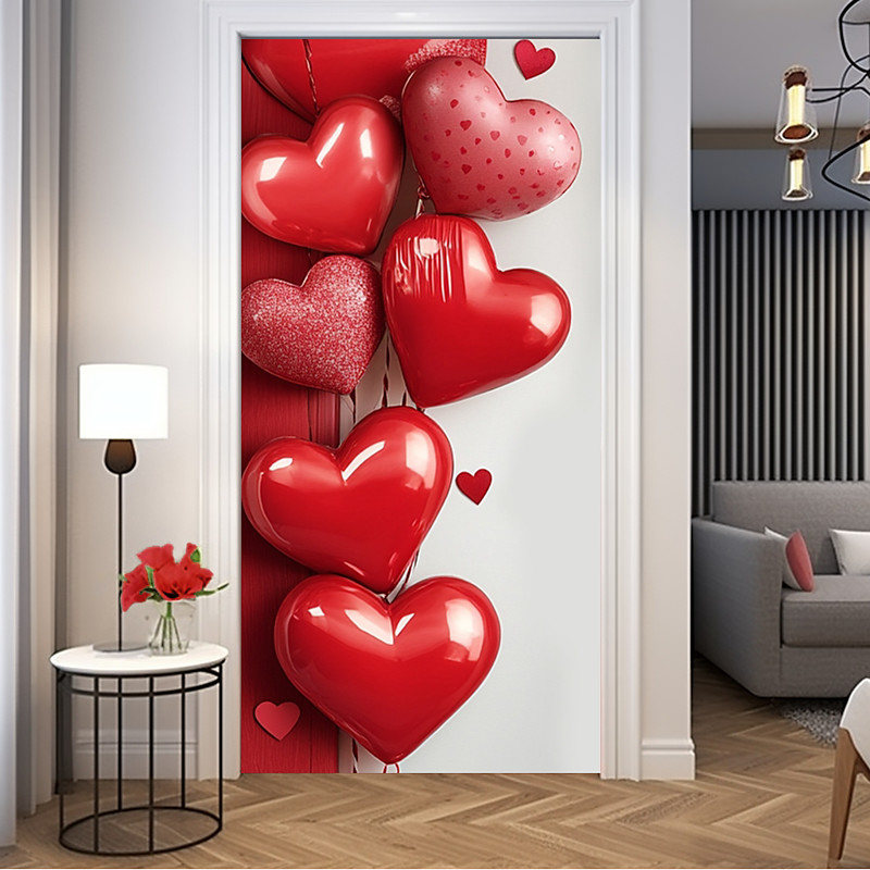 Valentine's Day Posters Door Cover Outdoor Banners Love Heart Cute Romantic 3D Party Dorm Shooting Backgrounds Front Door Marriage Proposal Decoration Home Decor