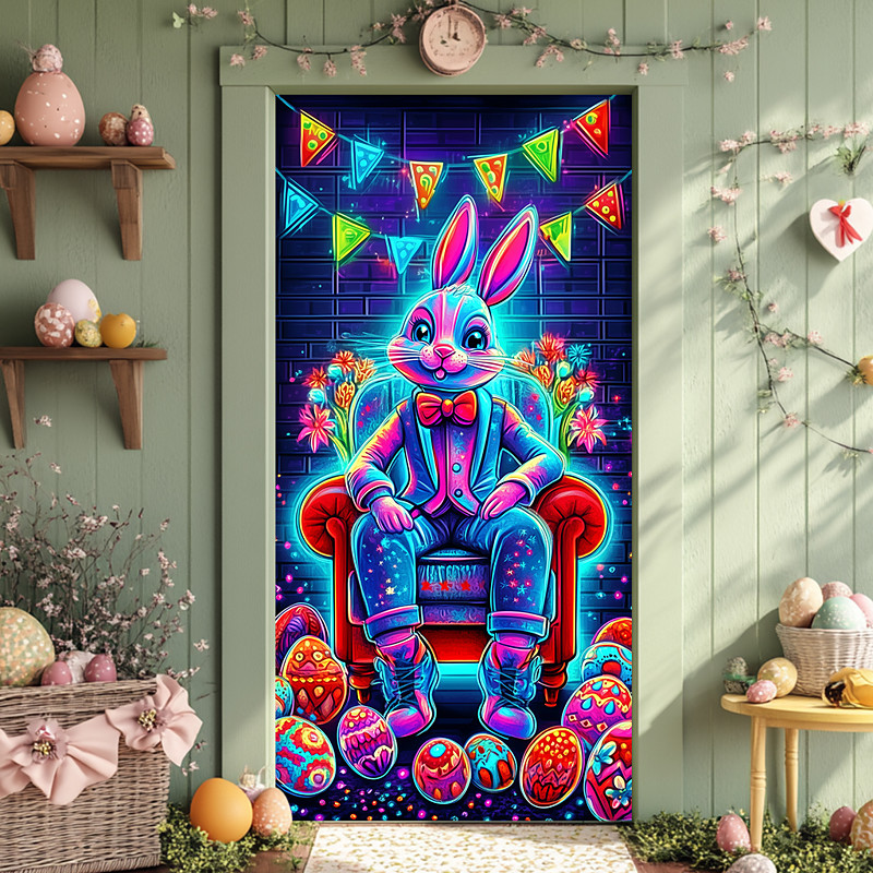Door Decorations Door Covers Bunny Eggs Door Tapestry Door Curtain Decoration Backdrop Indoor/Outdoor Door Banner for Front Door Farmhouse