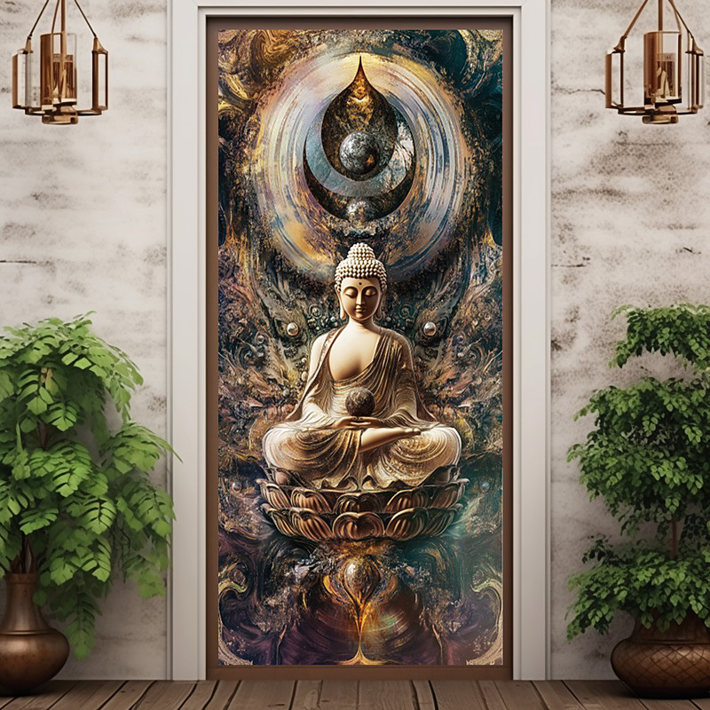 Bohemian Buddha Door Decorations Door Covers Door Tapestry Door Curtain Decoration Backdrop Indoor/Outdoor Door Banner for Front Door Farmhouse