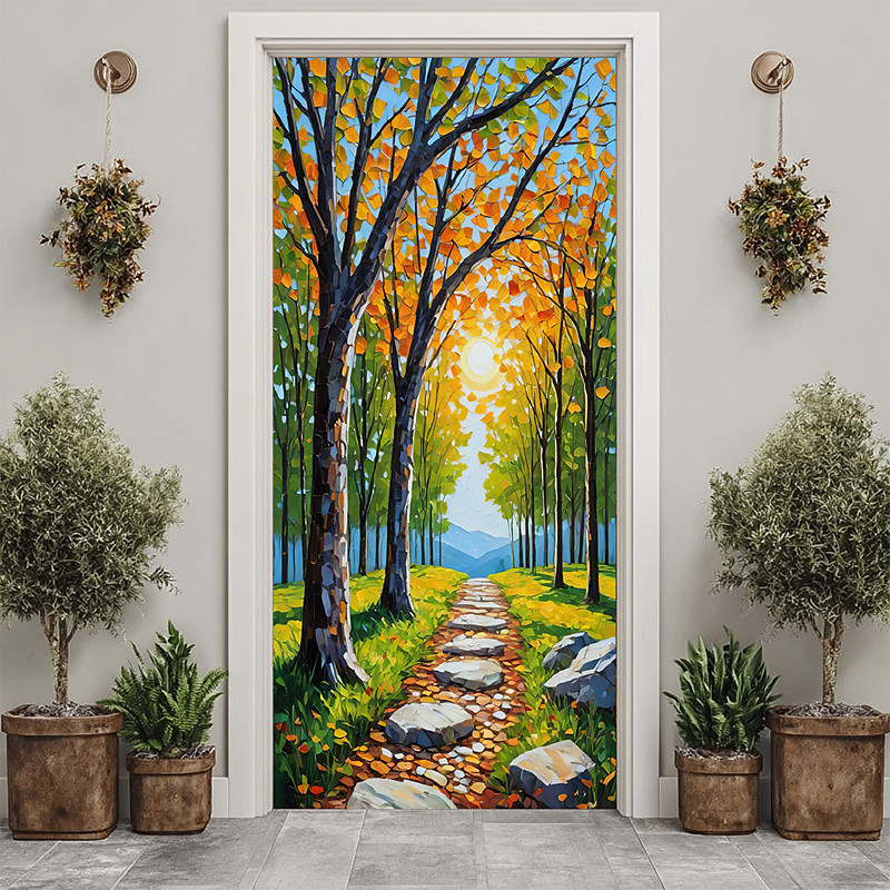 Door Cover Outdoor Banners Forest Aesthetic Art Bedroom Living Room Front Door Home Decor