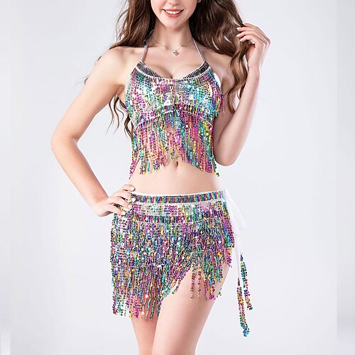 Abbigliamento da Danza Samba Carnevale 2026 Rio Carnival - Set di 2 Pezzi per Donne Vestito per Danza del Ventre con Top a Nappa a Paillettes e Sciarpa in Vita con Frange Abbigliamento da Carnevale