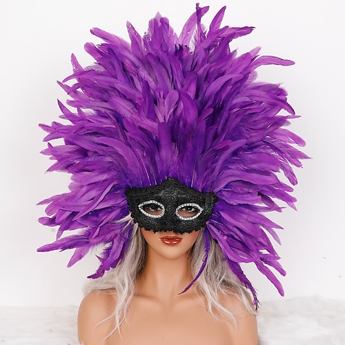 Carnival 2026 Accessori di samba del Carnevale di Rio Maschera in piume - Maschera da ballo in piume rossa arancione e bianca per costumi da festival in Brasile