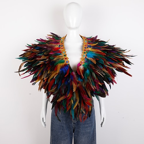 Accessori Samba del Carnevale 2026 Rio Carnevale Cappotto Sciarpa in Piume per Mardi Gras in Viola Verde Oro Poncho in Piume con Collare Gioiello per Donne Costume per Performance al Festival del