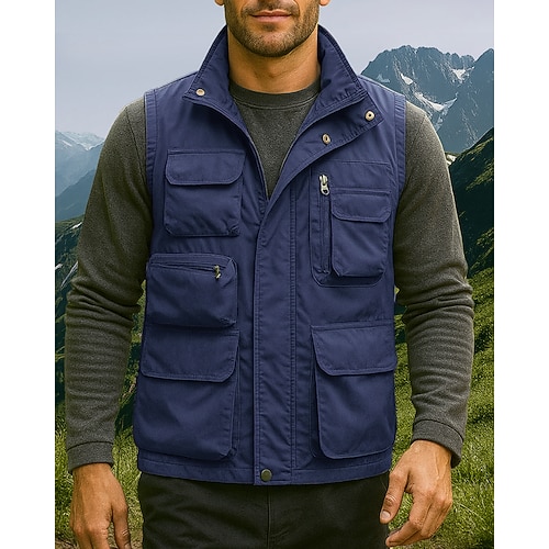 Per uomo Gilet Gilet da pesca Gilet da escursione Gilet senza maniche Giacca Gilet Esterno Strada Per eventi Da tutti i giorni Streetwear Moderno Primavera Autunno Tasche Misto cotone Antivento