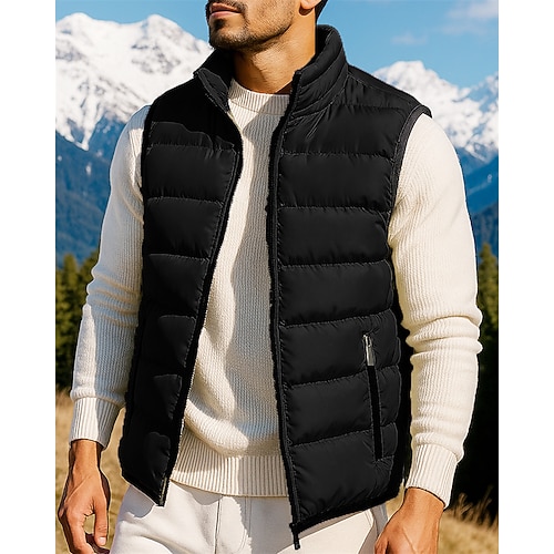 Per uomo Gilet imbottito Gilet Gilet trapuntato Giornaliero Appuntamento Da mare Di tendenza Informale Autunno inverno Tasche Poliestere Tenere al caldo Comodo Tinta unica Cerniera Colletto alla
