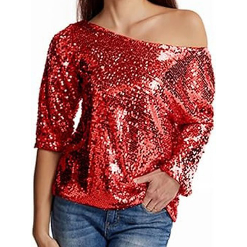 Women's Sequin Sparkly Party Glitter Sparkly Stylish Long Sleeve Cold Shoulder Regular Tops Daily Holiday Sequins Silver Black Pink Wine Gold Spring Fall