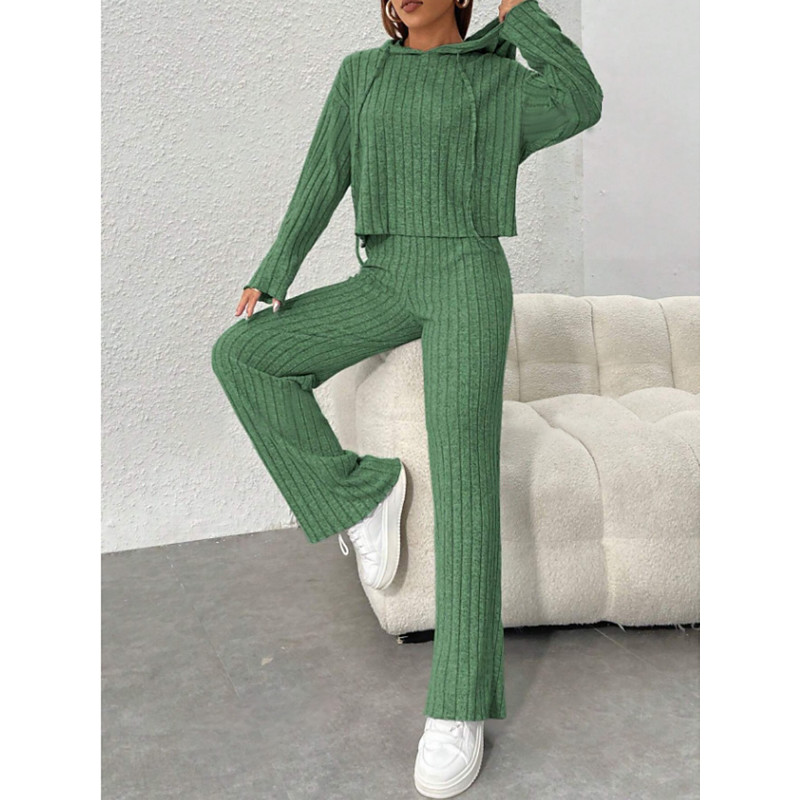 Women's Fashion Streetwear Pants Sets Bolero Top Long Sleeve Hooded Solid Color Outdoor Work Casual Black Purple Green Fall Regular Fit