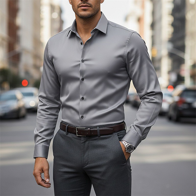Men's Dress Shirt Button Up Shirt Plain Work Wedding Black White Light Green Pink Long Sleeve Turndown All Seasons Clothing Apparel Basic