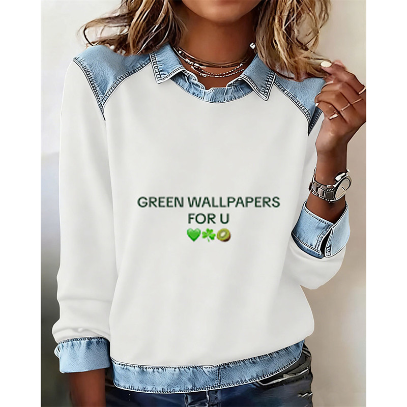 Women's Pullover Sweatshirt Floral Graphic Plain Elegant Warm Classic Long Sleeve Lapel Regular Tops Casual Home Work Patchwork Print Blue Light Yellow Grass Green White Light Green Fall Winter