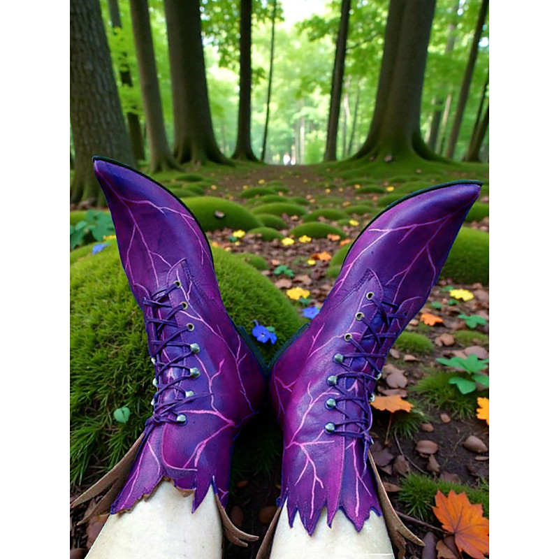 Women's Elf Leaf Boots, Fantasy Green Pointed Lace-Up Shoes with Leaf Detailing, Ideal for Carnival, Mardi Gras Costumes, Fairy Cosplay Forest-Themed Parties