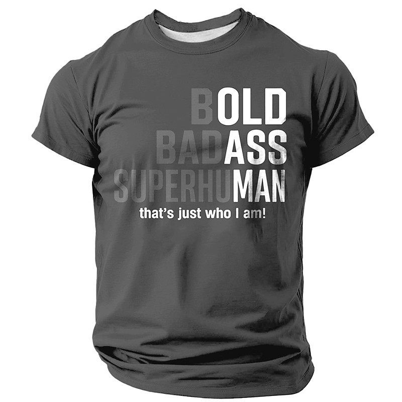 Mens Short Sleeve Graphic Tee: Bold Badass Superhuman 'That's Just Who I Am' Lifestyle Slogan Shirt