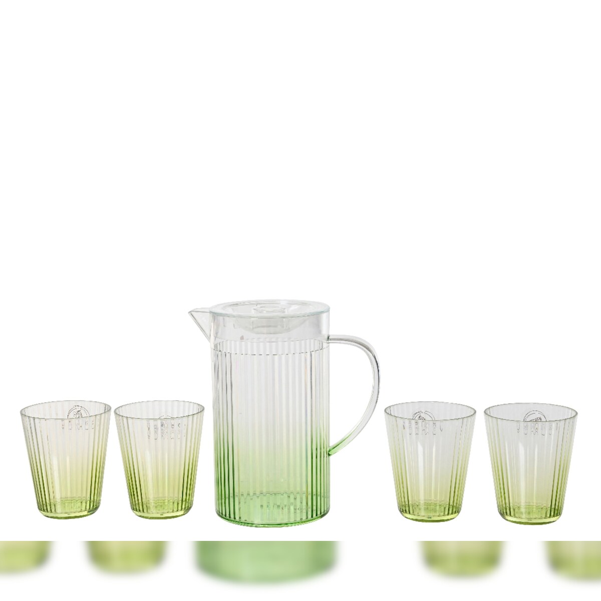 Decoris 4 Trinkgläser mit Kanne Kunststoff - Trinkgeschirr Gläser Krug Gläserset Karaffe Trinkbecher Wassergläser Saftgläser Limonadengläser Grün