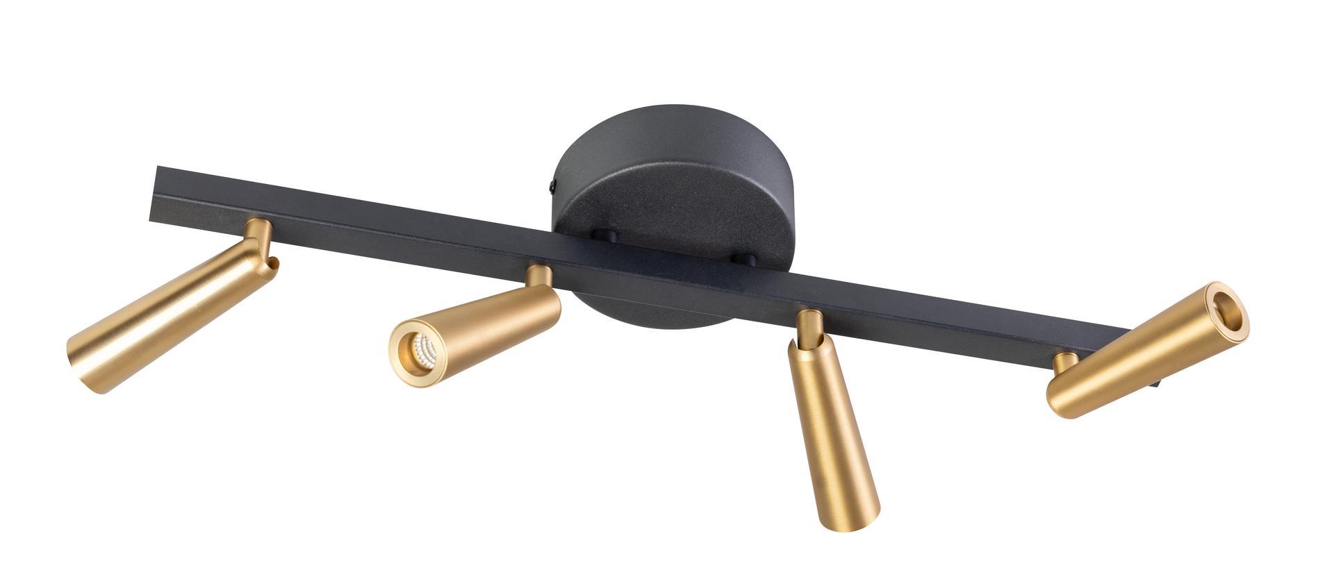 ETH Barry - spot en saillie 4 ampoules - 50 x 12 x 3 cm - LED 12W incluse - noir et laiton