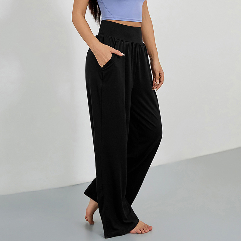 Women's Wide Leg Pants Yoga Pants with Pockets Tummy Control High Waist Gym Volleyball Workout Bottoms Solid Color Dark Grey Black Army Green Sports Activewear