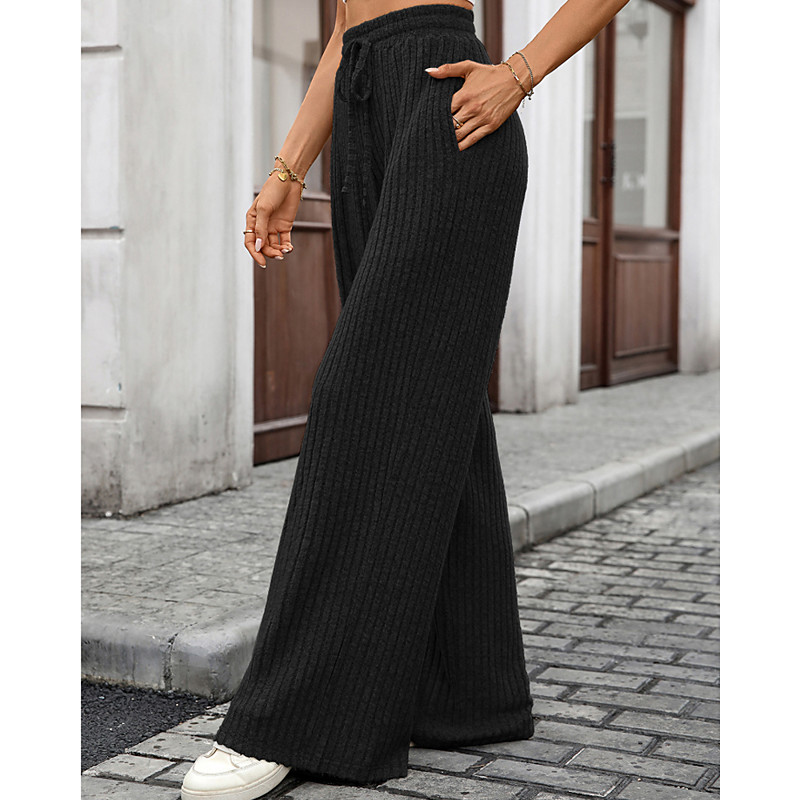 Women's Wide Leg Corduroy Pants Slacks Streetwear Casual Full Length Natural Plain Elastic Drawstring Design Soft Street Holiday Weekend Black Army Green Fuchsia Light Blue Fall Regular Fit