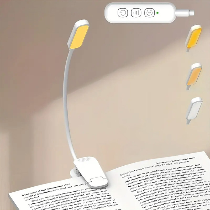 Rechargeable Reading Light Suitable for Bed Reading Equipped with 20 LEDs and Memory Function 3 Color Temperatures 5 Brightness Levels Flexible Goose Neck Lightweight Clip Book Reading Light