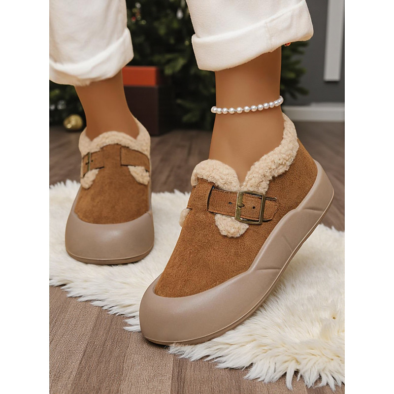 Women's Brown Faux Suede Winter Ankle Boots – Plush Fur Lining Slip-On Warm Snow Shoes, Cozy Indoor Outdoor Wear