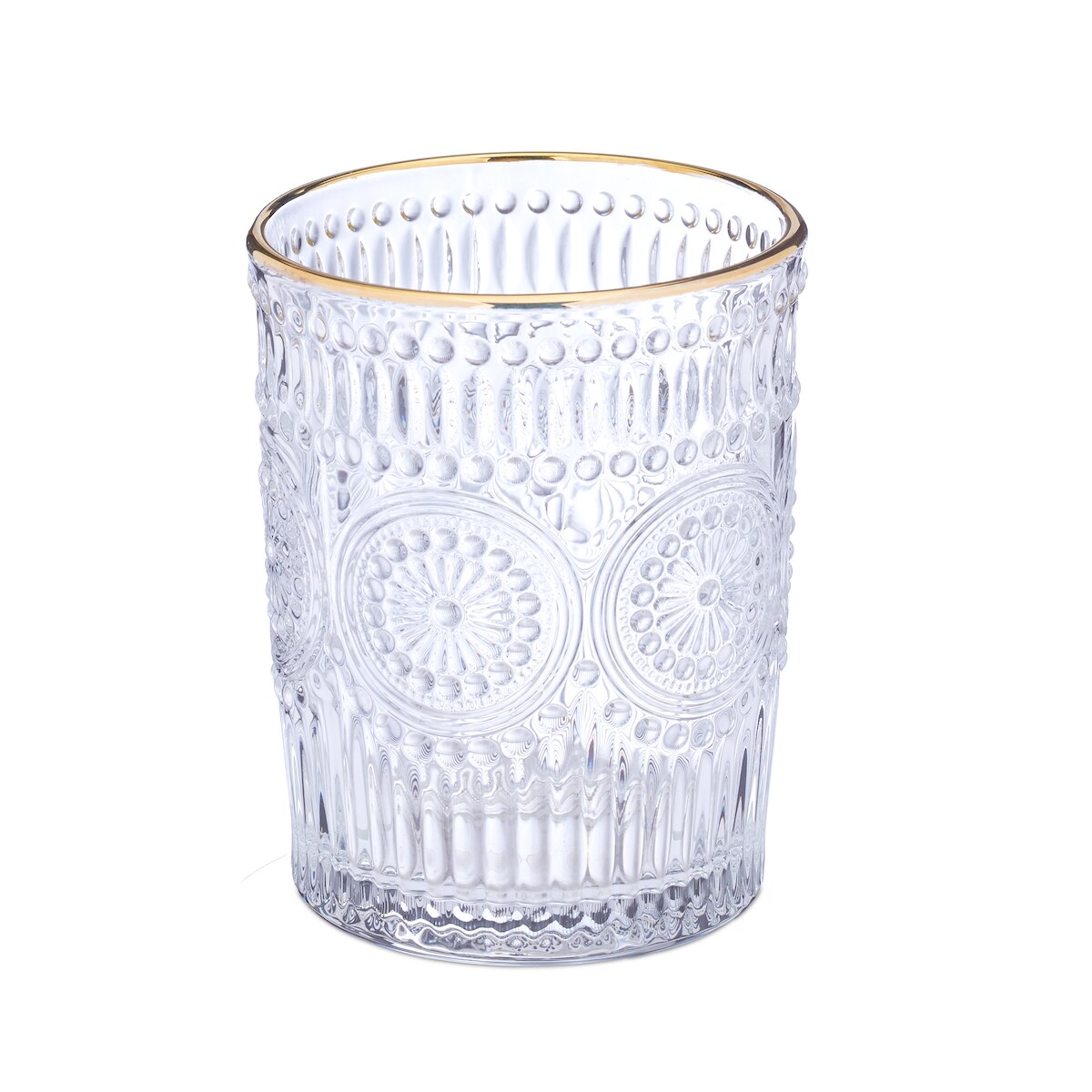 Relaxdays Trinkgläser, 4er Set, 300 ml Volumen, Vintage Gläser mit Goldrand, für Wasser, Saft und Limo, transparent