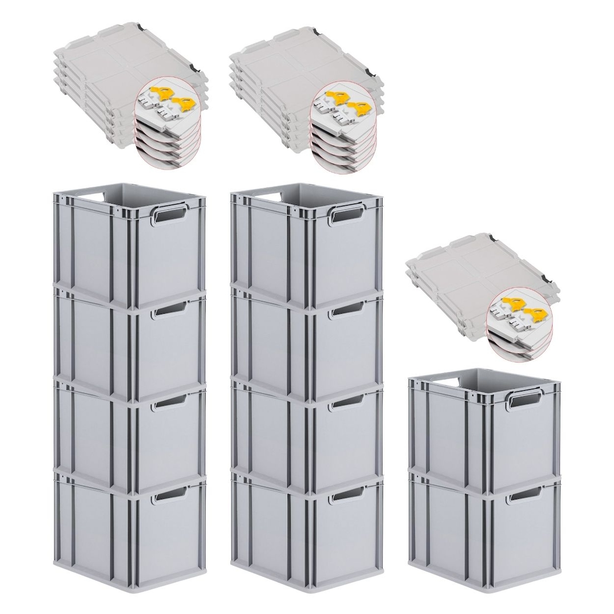 PROREGAL SparSet 5x Eurobox NextGen Color, HxBxT 32x30x40cm, 30 Liter, Griffe gelb zu, Schwarz, Eurobehälter, Transportbehälter