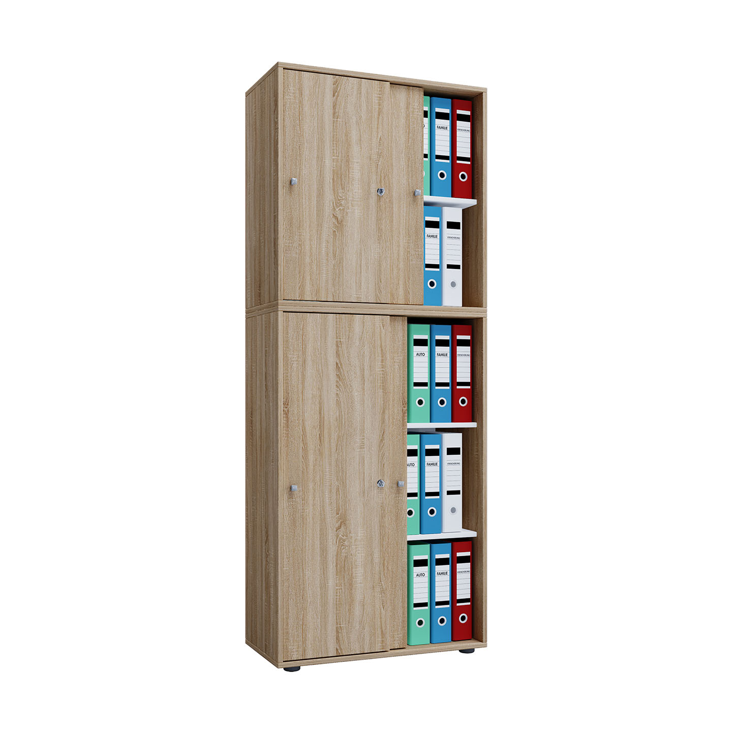 Lona XXL Büroschrank mit 4 Schiebetüren und Schloss Sonoma-Eiche dekor.