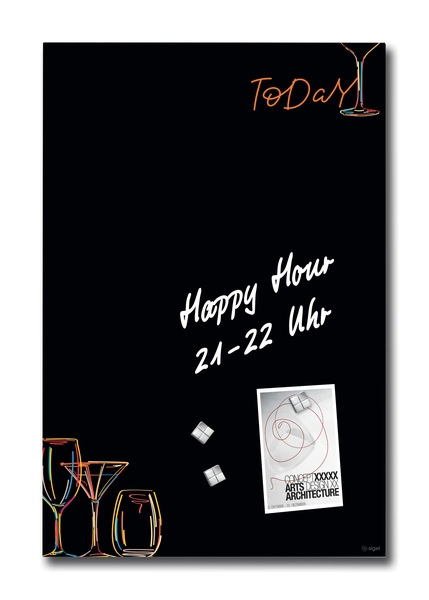 Sigel GL396 Glas-Magnettafel Artverum - Design Drinks - 40 x 60 cm - schwarz, orange - Sicherheitsglas