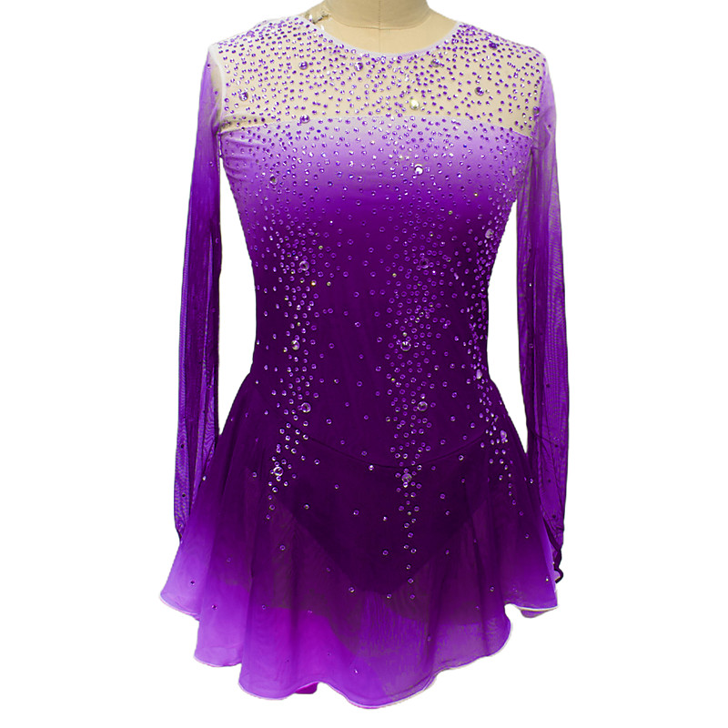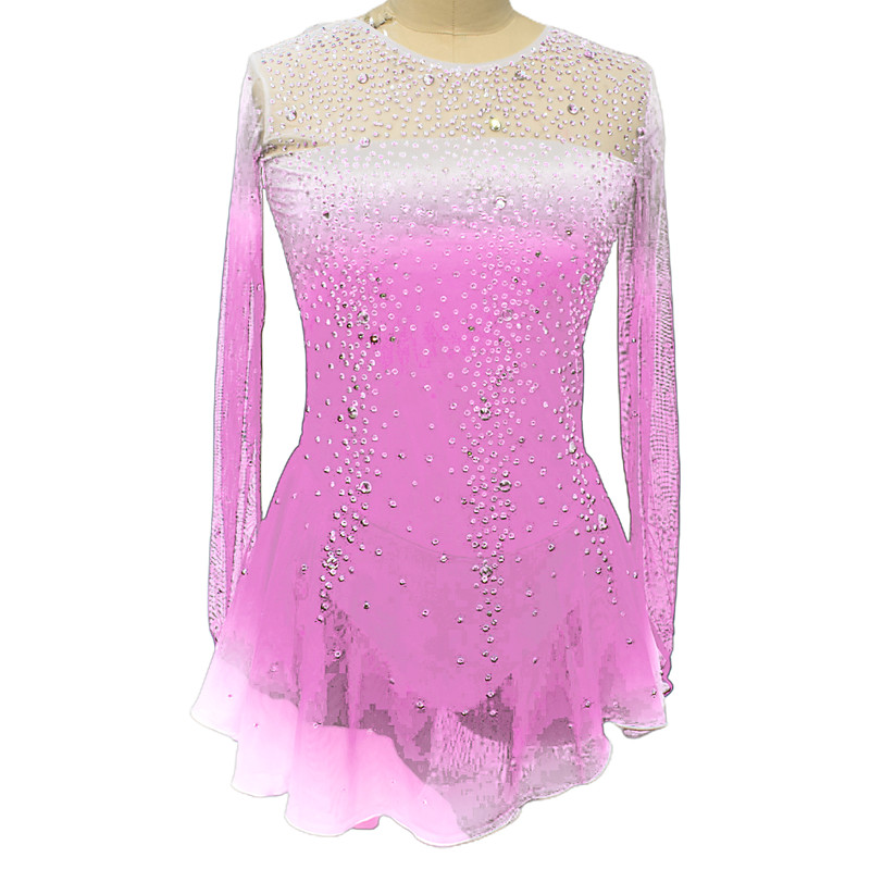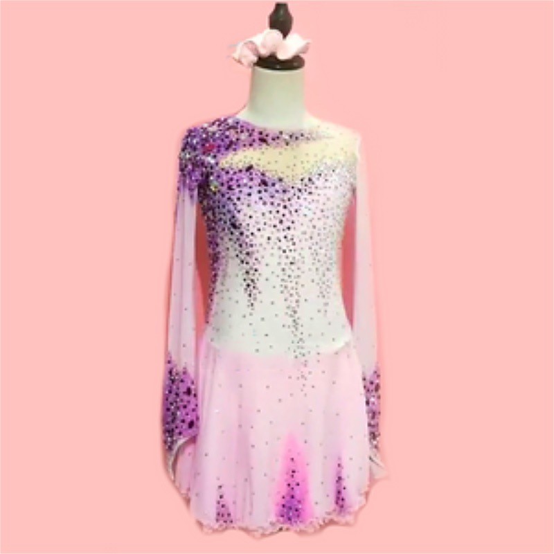 Figure Skating Dress Women's Girls' Ice Skating Dress Pink Purple Patchwork Mesh High Elasticity Training Competition Skating Wear Classic Crystal / Rhinestone Long Sleeve Ice Skating Figure Skating