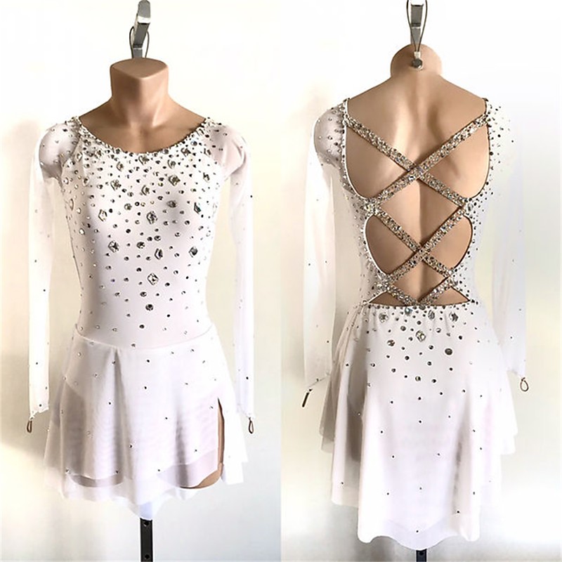 Figure Skating Dress Women's Girls' Ice Skating Dress Outfits White Yellow Pink Halo Dyeing Mesh Spandex High Elasticity Competition Skating Wear Crystal / Rhinestone Long Sleeve Ice Skating Figure