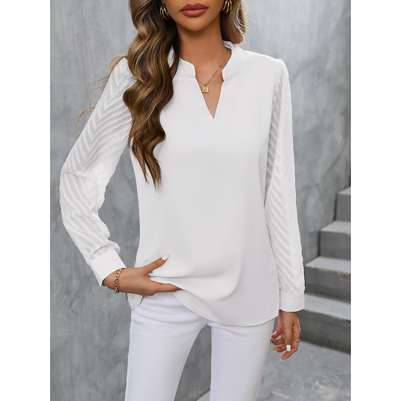 Women's Blouse Solid Color Elegant Daily Stylish Long Sleeve V Neck Regular Tops Daily Patchwork Mesh Black White Pink Summer Spring Fall