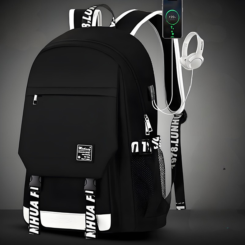 Boys' Luminous School Backpack with USB Charging Port and Lock – Waterproof Teen Bookbag with Headphone Jack for Middle School, Travel, or Daily Use