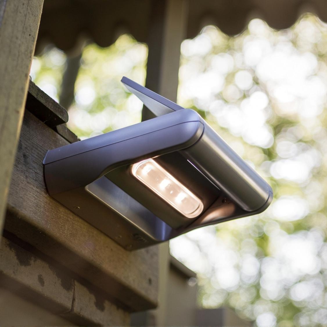 Lutec Mini Led Strahler - solarbetriebene Außenwandleuchte - 18 x 18 cm - 3 Stufen Dimmer - 1W LED inkl. - IP44 - silbergrau