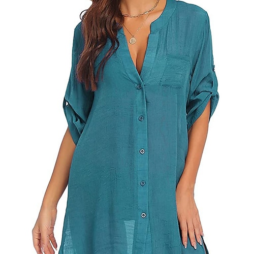 Per donna Mini Abito Abito Bianco Abito da Spiaggia Abito nero Copricostume Elegante Moda Classico Quotidiano All'aperto Spiaggia Vestibilità comoda Semplice Mezza Manica Scollo a V Blu Nero Bianco