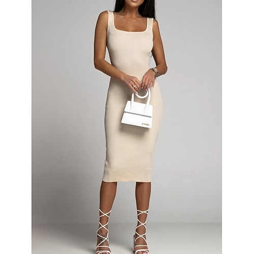 Per donna Abito Midi Abito Bianco Abito da laurea Attillato Abito aderente Elegante Moda Moderno All'aperto Vacanza Uscire Vestibilità regolare Semplice Senza Maniche Collo quadrato Nero Bianco Verde