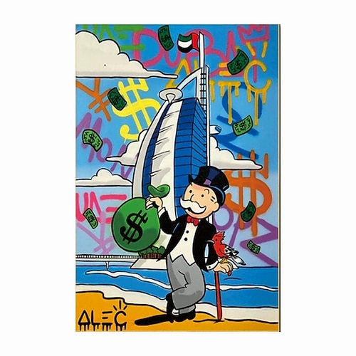 Handgefertigtes handgemaltes Ölgemälde Wall Street Art modernes abstraktes Alec-Monopol-Millionär-Gemälde Heimdekoration Dekor gerollte Leinwand kein Rahmen ungedehnt