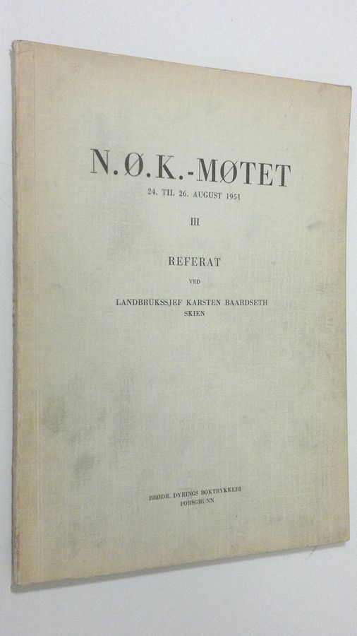 N.O.K.-Motet 24. til 26. August 1951 III referat ved landbrukssjef karsten baardseth skien