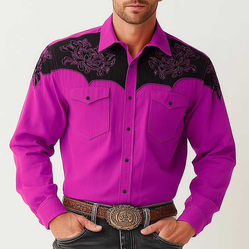 Men's Floral Print Ethnic Flowers Shirt Western Shirt Cowboy Shirt Long Sleeve Vintage Retro Outdoor Casual WorkWear Spring Fall Turndown Front Two Pockets Linen Like Shirt Button Up Shirts Black Red