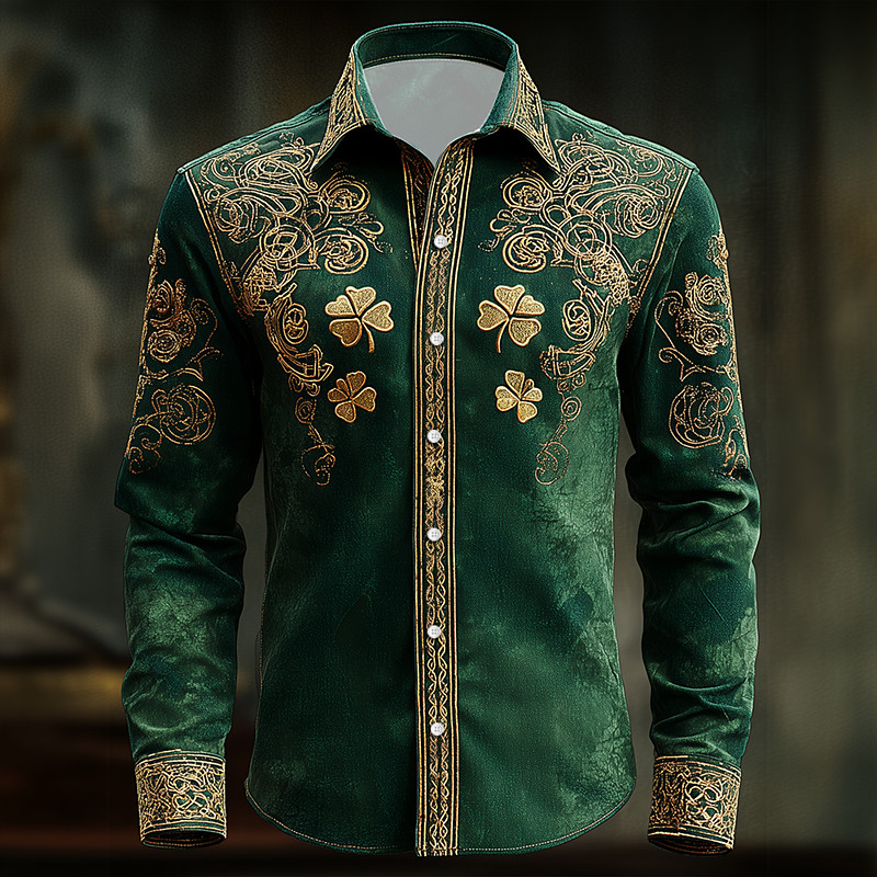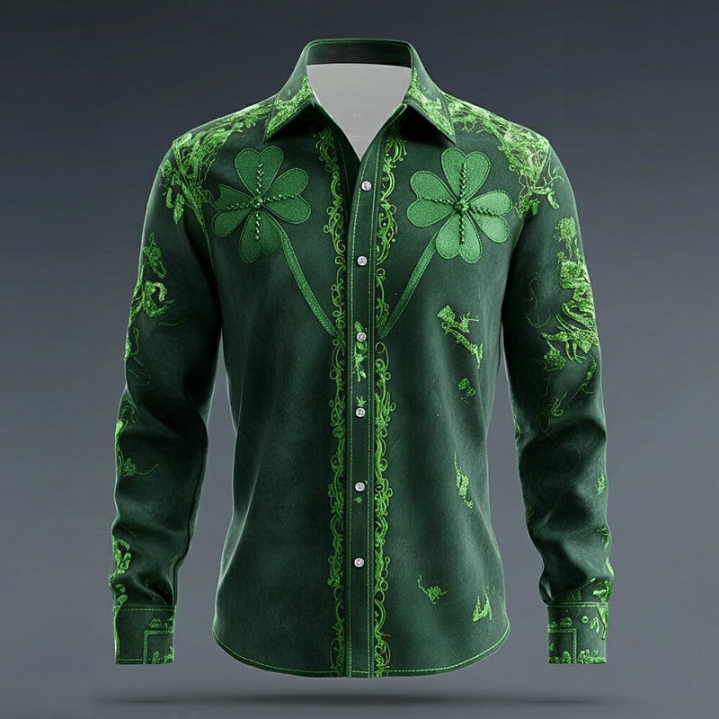 St. Patrick's Day Men's Four Leaf Clover Shamrock Celtic Art Shirt Button Up Shirt Long Sleeve Vintage Retro Holiday Spring Fall Turndown 3D Print Linen Like Shirt Green 1# Green