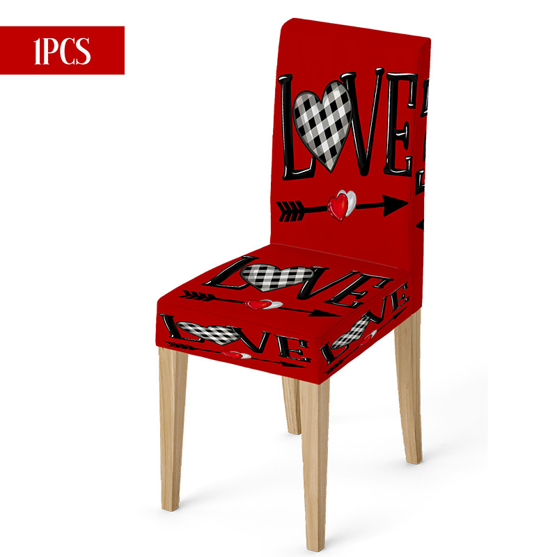 Valentine's Day Stretch Dining Chair Cover Black White Buffalo Check Heart Car Bowknot Chair Back Slipcover Washable Winter Home Restaurant Living Room Kitchen Decor 1/4/6 Pcs