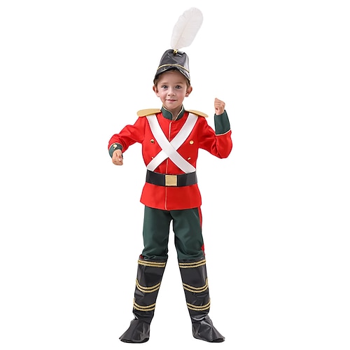 Soldatino giocattolo Costume Abito di Natale fantasia Ragazzi Costume Cosplay Costume di Natale Bambini Natale Capodanno Performance Feste Top Pantaloni Cintura Cappello