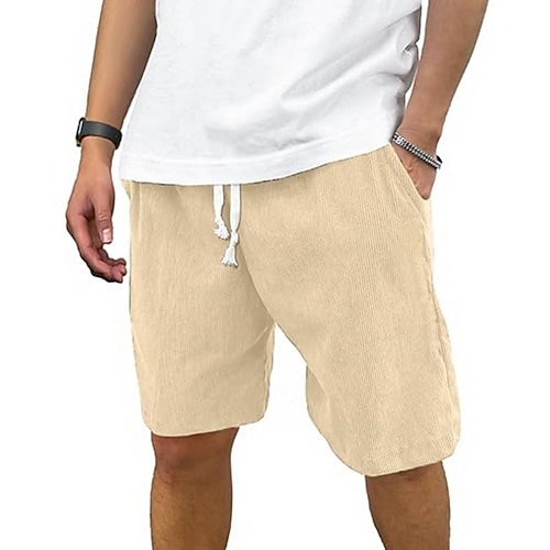 Per uomo Pantaloncini Estivi Shorts da Spiaggia Pantaloncini casual Pantaloncini di velluto a coste Coulisse Elastico in vita Tinta unica Comodità Lunghezza al ginocchio Quotidiano All'aperto Ferie