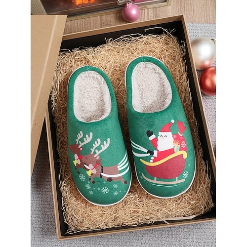 pantofole natalizie in cotone da interno, autunno inverno, design di Babbo Natale, comode, calde e morbide, per uomo e donna, da indossare in casa, morbide e comode.