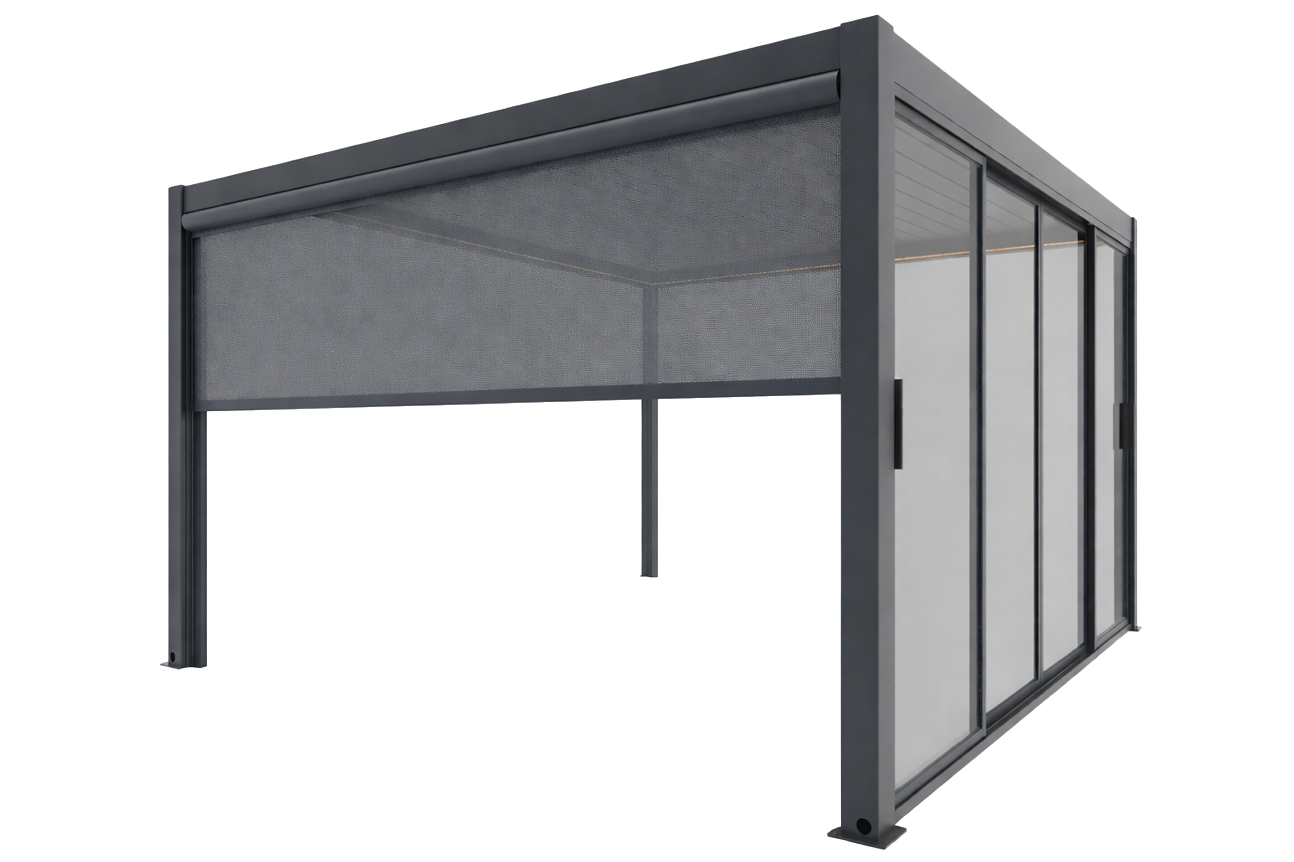 Pergola BELIZE Graphite + 1 kit de moustiquaire Ardoise 3,8 x 3 m - Aluminium traité époxy, Polycarbonate Hespéride