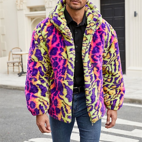 Per uomo Giacca Invernale Cappotto in Pelliccia Sintetica Vacanza Quotidiano Calore Termico Pile Autunno Inverno Leopardo Moda Streetwear Con Cappuccio Regolare Giallo Viola Giacca