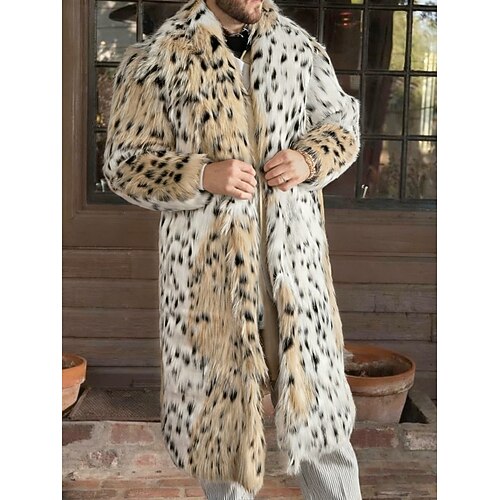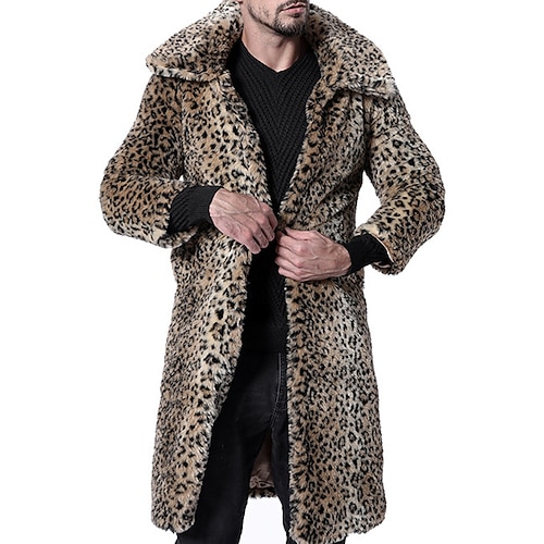 Per uomo Giacca Invernale Cappotto in Pelliccia Sintetica Vacanza Quotidiano Calore Termico Pile Autunno Inverno Leopardato Moda Streetwear Bavero Lungo Cachi Giacca