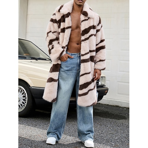 Per uomo Giacca Invernale Cappotto in Pelliccia Sintetica Vacanza Quotidiano Calore Termico Pile Autunno Inverno Zebrato Moda Streetwear Bavero Lungo Albicocca Giacca