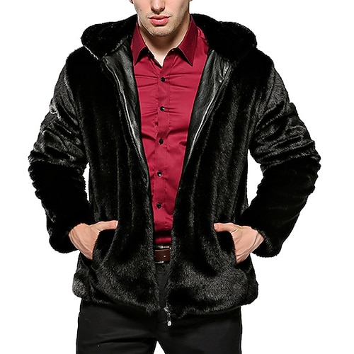 Per uomo Giacca Invernale Cappotto in Pelliccia Sintetica Vacanza Quotidiano Calore Termico Tasca Pile Inverno Semplice Moda Streetwear Con Cappuccio Regolare Nero Giacca