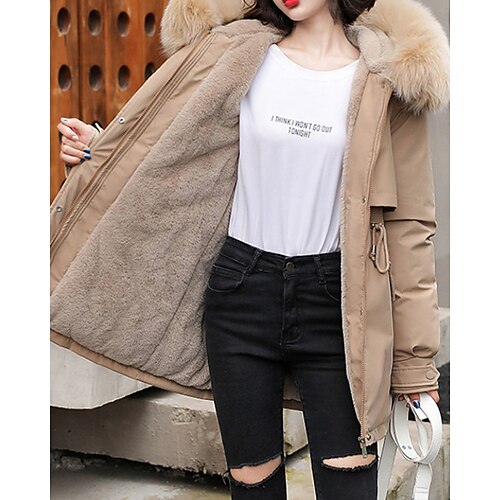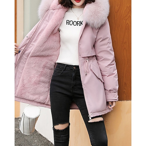 Per donna Giacca imbottita Giacca in Pile Cappotto in Pelliccia Sintetica Caldo Confortevole Cerniera Tasca Casual Semplice All'aperto Abbigliamento quotidiano Uscire Weekend Lungo Con Cappuccio