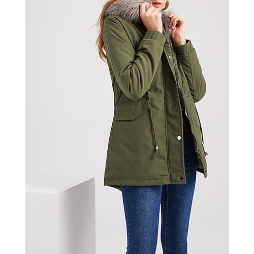Per donna Giacca imbottita Giacca in Pile Cappotto in Pelliccia Sintetica Caldo Confortevole Cerniera Tasca Bottoni Casual Semplice Vacanza Streetwear Uscire Weekend Lungo Con Cappuccio Vestibilit