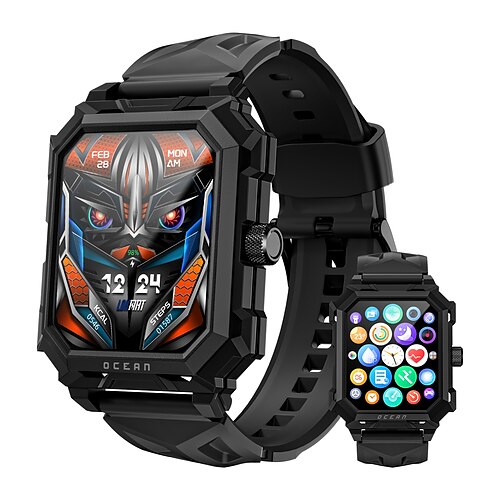 Lokmat Ocean Max Smartwatch, 1,96 Zoll, Bluetooth-Telefonie, Schrittzähler, Anruferinnerung, Schlaftracker, kompatibel mit Android und iOS, Unisex, lange Standby-Zeit, Freisprechfunktion, wasserdicht (IP68), 57 mm